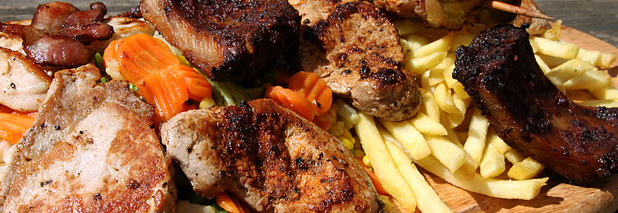 Gans, Ente, Geflügel mit Haut, Schweinebraten, Bratwürste, Salami, aber auch Hackfleich